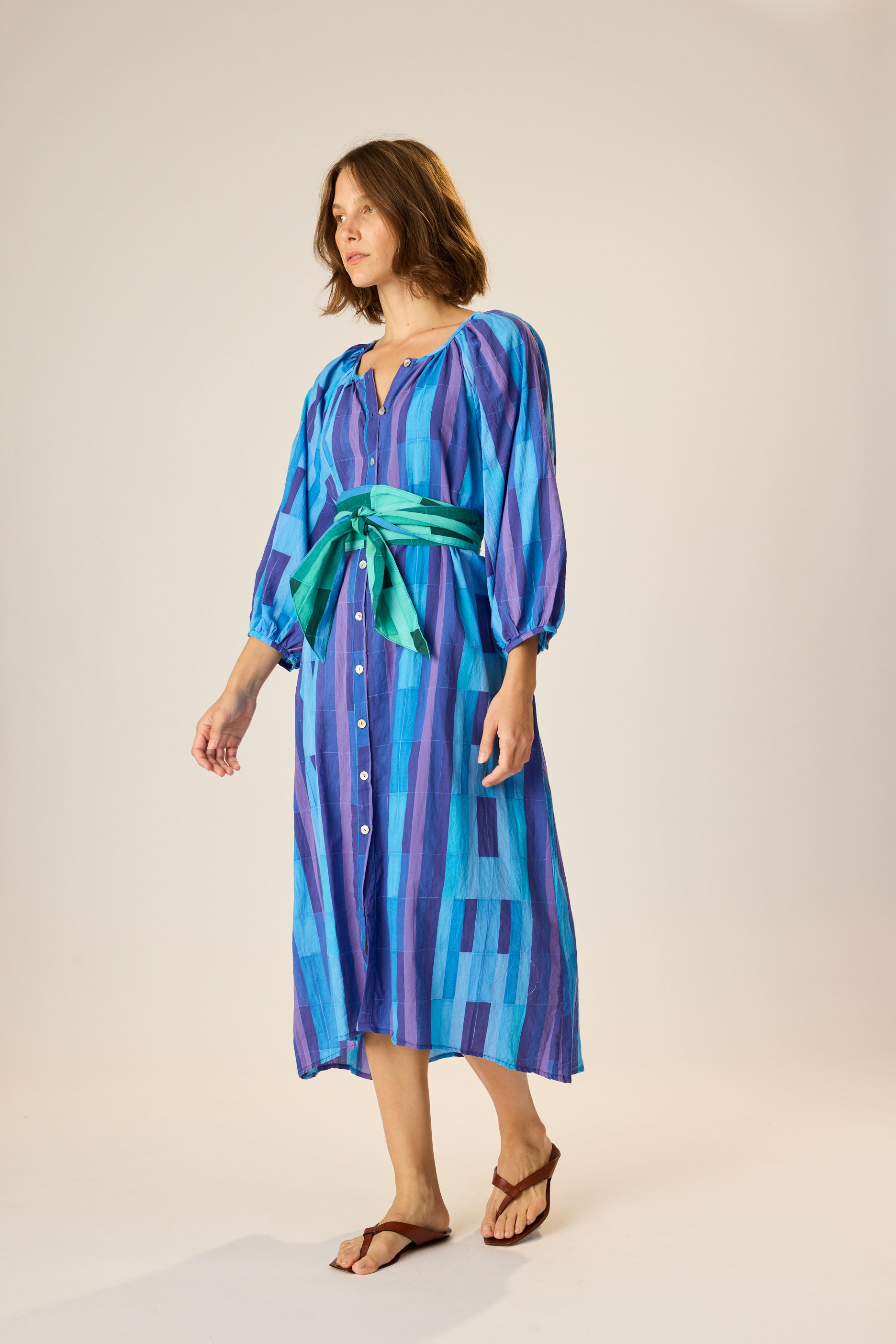 Midi dress with 3/4 length sleeves.