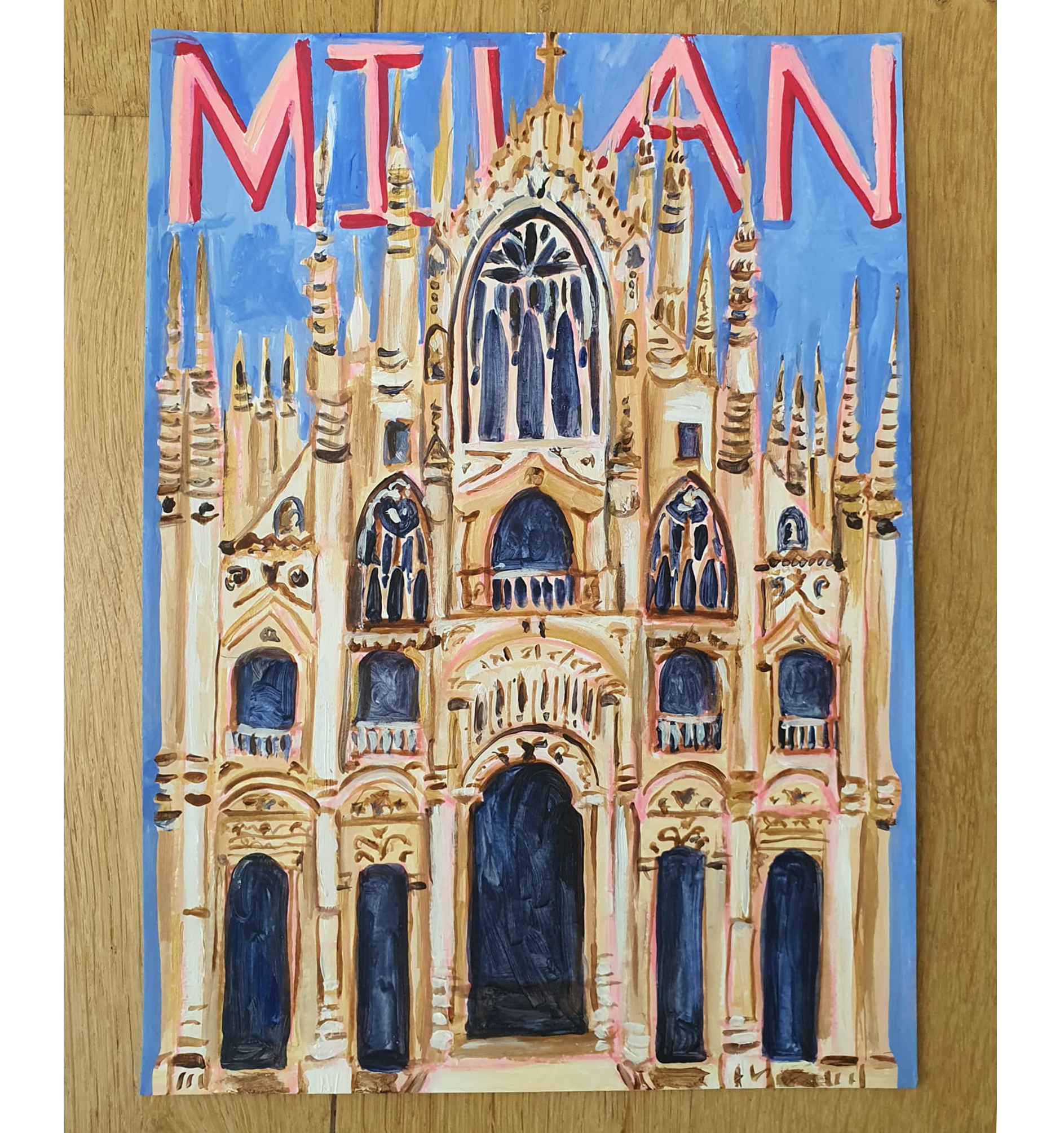 Original painting, acrylic and ink on watercolor paper. Sold unframed, 9.5' x 13". Signed by Lulu on the backside.