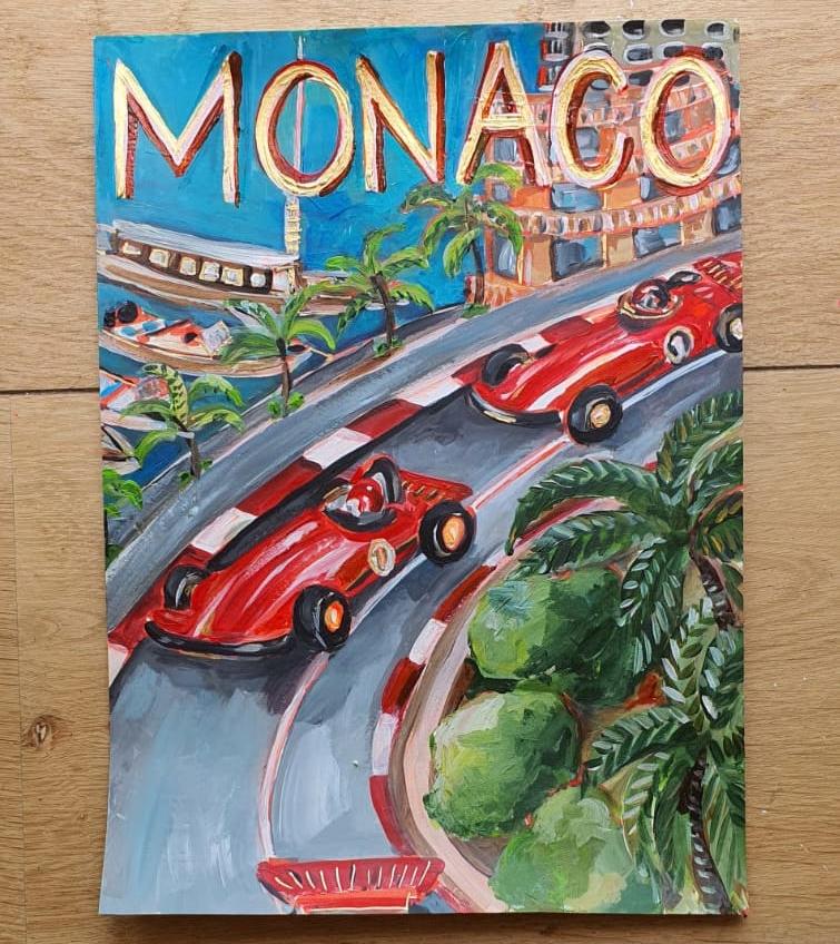 Original painting, acrylic and ink on watercolor paper. Sold unframed, 9.5' x 13". Signed by Lulu on the backside.