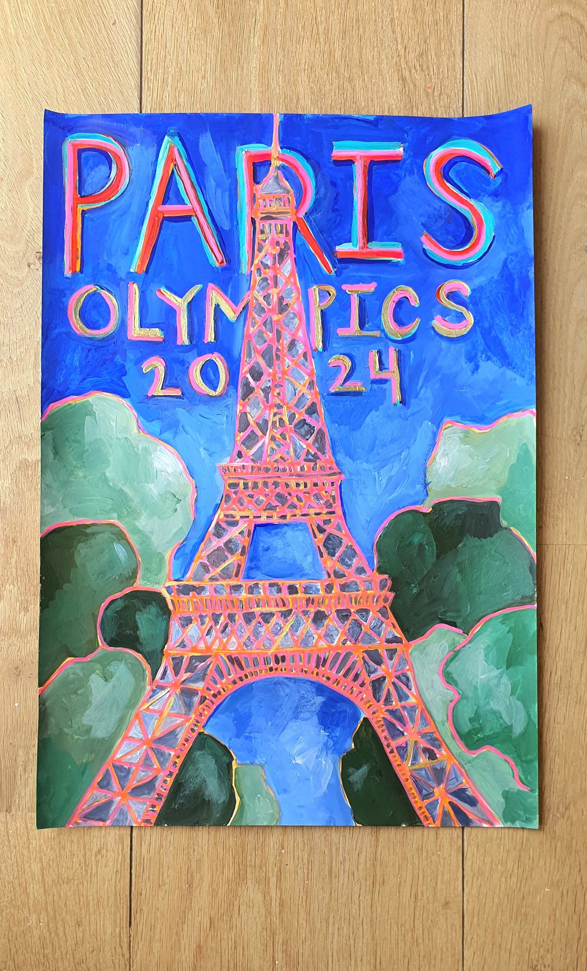 Original painting, acrylic and ink on watercolor paper. Sold unframed, 13"x19". Signed by Lulu on the backside.