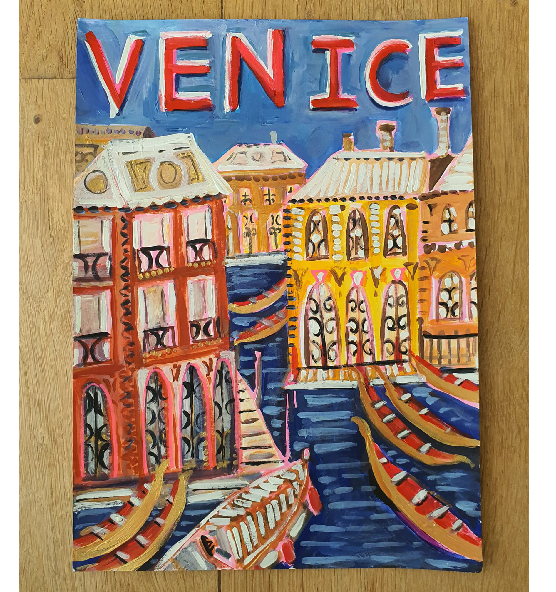 Original painting, acrylic and ink on watercolor paper. Sold unframed, 9.5' x 13". Signed by Lulu on the backside.